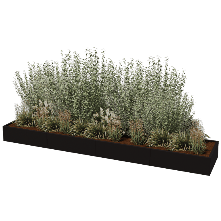 Ez a virágtartó egy moduláris acél virágtartó, amely építőcsomagként kerül forgalomba. A virágtartó különálló panelekből és sarokelemekből épül fel. A tartók teljesen vakon csatlakoztathatók. Nincsenek látható rögzítések. Moduláris rendszerünknek köszönhetően nagyon nagy méretek is lehetségesek. Sarokelemek használatával egyedi formák is létrehozhatók, amelyek máshol nem kaphatók. További információért lásd a használati útmutatót.