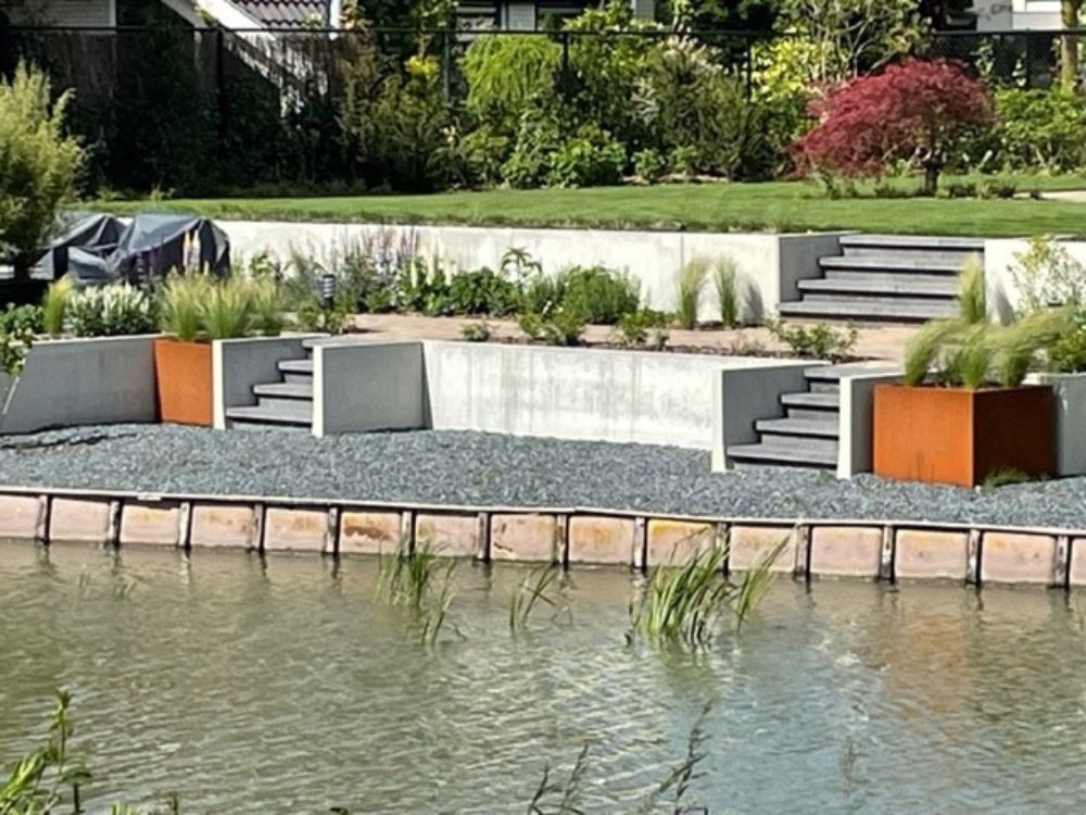 Élsz egy csatorna, tó vagy vízpart mellett? Akkor a víz és a körülötte lévő természet nyugodt atmoszférát teremt. Cortenacél termékekkel stílusos és modern akcentust adhatsz a víz melletti kertednek. A meleg rozsda színe tökéletes kontrasztot alkot a hűvös vízzel és a friss zölddel a kertedben.