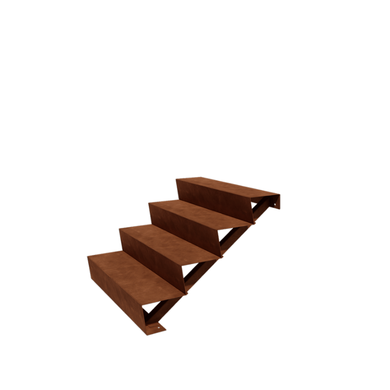 A cortenacél lépcső 17 cm magas lépcsőfokokból áll. A lépcsők könnyen felszerelhetők a mellékelt szerelési útmutató segítségével.