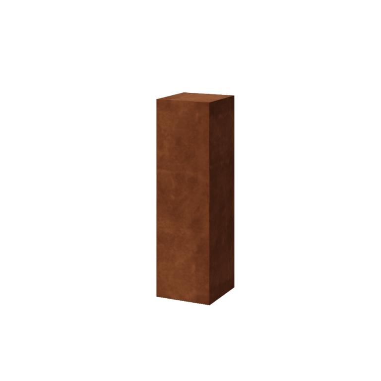 A talapzat egy négyzet alakú oszlop, amely cortenacélból készült. Ez a tartós anyag lehetővé teszi, hogy a talapzat minden évszakban kint maradjon, és nem szükséges letakarni. A tűzrakó, a kertszobor vagy a növény gyönyörűen mutat rajta.