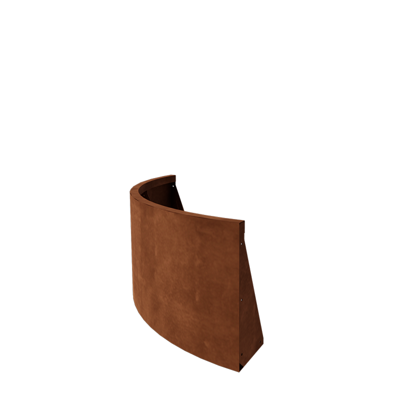 A visszatartó falak kiváló minőségű Corten-A acéllemezből készülnek. Ennek a fémfajtának egyedi tulajdonsága, hogy nagyon sűrű oxidbőrt (rozsdaréteget) képez. A átrozsdásodás lehetetlen. A sűrű oxidbőr megvédi a mélyebben fekvő anyagot az oxigéntől, így az oxidáció jelentősen lelassul, míg a korrózió folytatódik. A visszatartó falak rozsdamentesen, szürke fém színben kerülnek szállításra. A rozsdásodási folyamat az első 2 hónapban kezdődik, ehhez nincs szükség kezelésre. A rozsdásodási folyamat során a visszatartó falak színt adhatnak le. A Corten acél egy fémötvözet, amely vasból áll, és ehhez réz, foszfor, szilícium, nikkel és króm van hozzáadva.