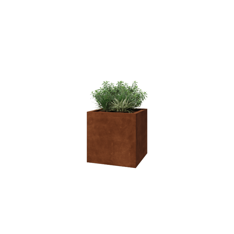 Corten acél virágláda - Négyzet - 70 x 70 x 70 cm - Hegesztett - Fenéklemezzel