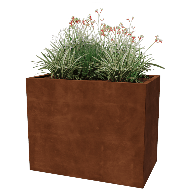 A moduláris virágtartóink panelei kiváló minőségű Corten-A acéllemezből készülnek. Ennek a fémnek az egyedi tulajdonsága, hogy nagyon sűrű oxidbőrt (rozsda réteg) képez. A átrozsdásodás lehetetlen. A sűrű oxidbőr megvédi a mélyebben fekvő anyagot az oxigéntől, így az oxidáció jelentősen lelassul, míg a korrózió folytatódik. A corten acél virágtartó rozsdamentes, szürke fém színben kerül forgalomba. A rozsdásodási folyamat hetek vagy 2 hónap után kezdődik, ehhez nincs szükség kezelésre. A rozsdásodási folyamat során a virágtartó színt adhat le. Corten acél egy fémötvözet, amely vasból áll, amelyhez rezet, foszfort, szilíciumot, nikkelt és krómot adtak hozzá.