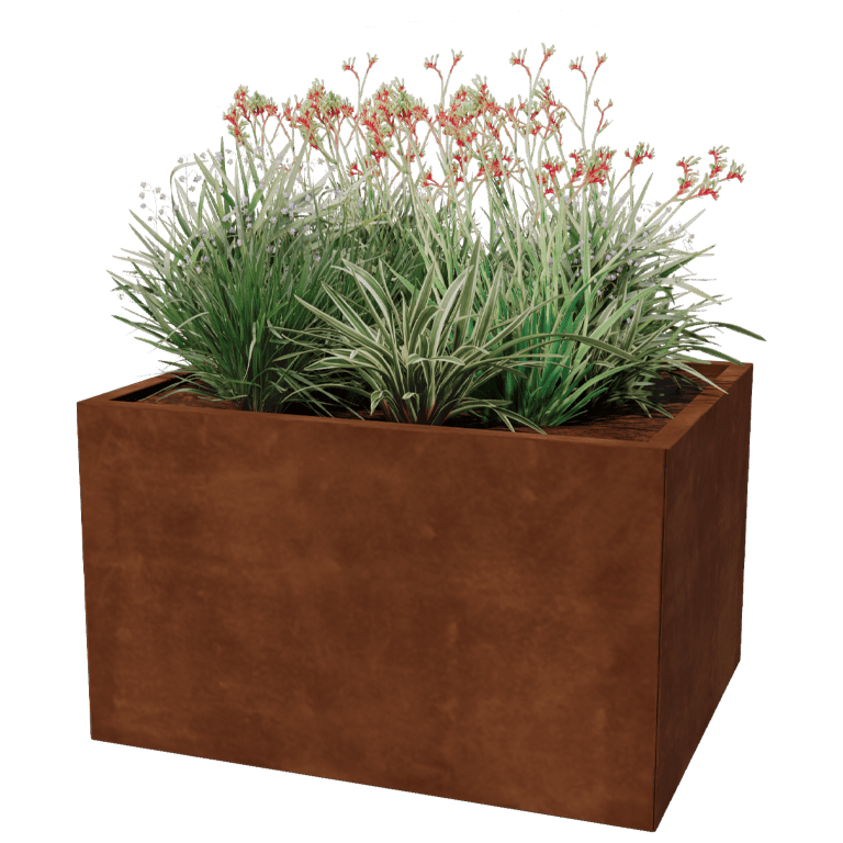 A moduláris virágtartóink panelei kiváló minőségű Corten-A acéllemezből készülnek. Ennek a fémfajtának egyedi tulajdonsága, hogy nagyon sűrű oxidbőrt (rozsda réteg) képez. A átrozsdásodás lehetetlen. A sűrű oxidbőr megvédi a mélyebben fekvő anyagot az oxigéntől, így az oxidáció jelentősen lelassul, míg a korrózió folytatódik. A corten acél virágtartó rozsdamentes, szürke fém színben kerül szállításra. A rozsdásodási folyamat hetek vagy 2 hónap után kezdődik, ehhez nincs szükség kezelésre. A rozsdásodási folyamat során a virágtartó színt adhat le. Corten acél egy fémötvözet, amely vasból áll, amelyhez rezet, foszfort, szilíciumot, nikkelt és krómot adtak hozzá.