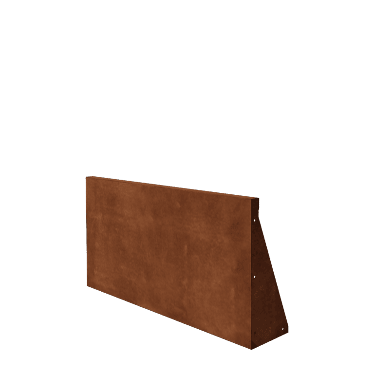 A visszatartó falak kiváló minőségű Corten-A acéllemezből készülnek. Ennek a fémfajtának egyedi tulajdonsága, hogy nagyon sűrű oxidbőr (rozsda réteg) képződik rajta. A átrozsdásodás lehetetlen. A sűrű oxidbőr megvédi a mélyebben fekvő anyagot az oxigéntől, így az oxidáció jelentősen lelassul, míg a korrózió folytatódik. A visszatartó falak rozsdamentes, szürke fém színben kerülnek szállításra. A rozsdafolyamat kezdete az első 2 hónapban történik, ehhez nincs szükség kezelésre. A rozsdafolyamat során a visszatartó falak színt adhatnak le. A Corten acél egy fémötvözet, amely vasból áll, és ehhez réz, foszfor, szilícium, nikkel és króm van hozzáadva.
